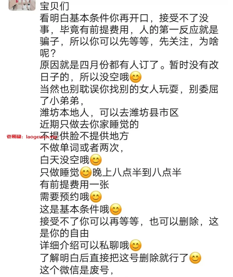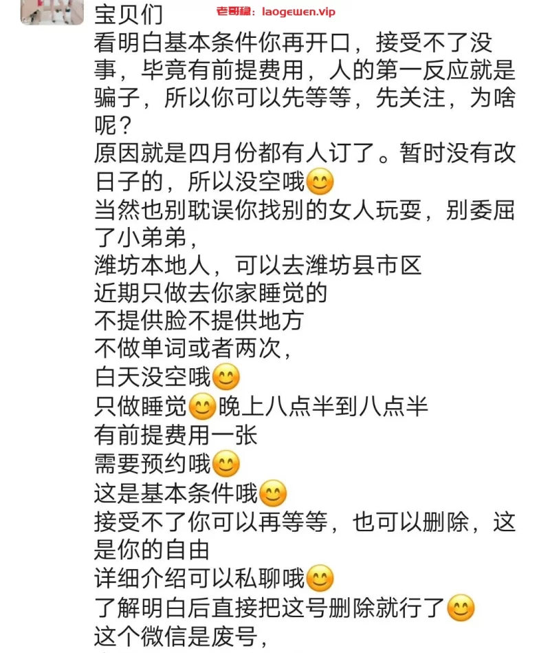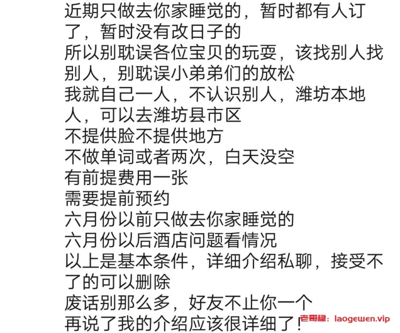 信息分类:楼凤兼职 地区:山东-潍坊 信息来源:朋友介绍 小姐数量:1 小姐年龄:29 小姐素质:9 小姐外形:9 服务项目:包夜不限次不限方式 价格:800 营业时间:预约 环境设备:酒店 安全评估:很安全 详细地址:本段信息已隐藏,请先登陆。点击登陆 , 或者 点击注册 联系方式:本段信息已隐藏,请先登陆。点击登陆 , 或者 点击注册 综合评价:良心价,身材好,巨骚,你可以撩撩试试 详细介绍: 这个只包夜,但是身材好,巨骚,你可以撩撩试试 楼凤兼职
