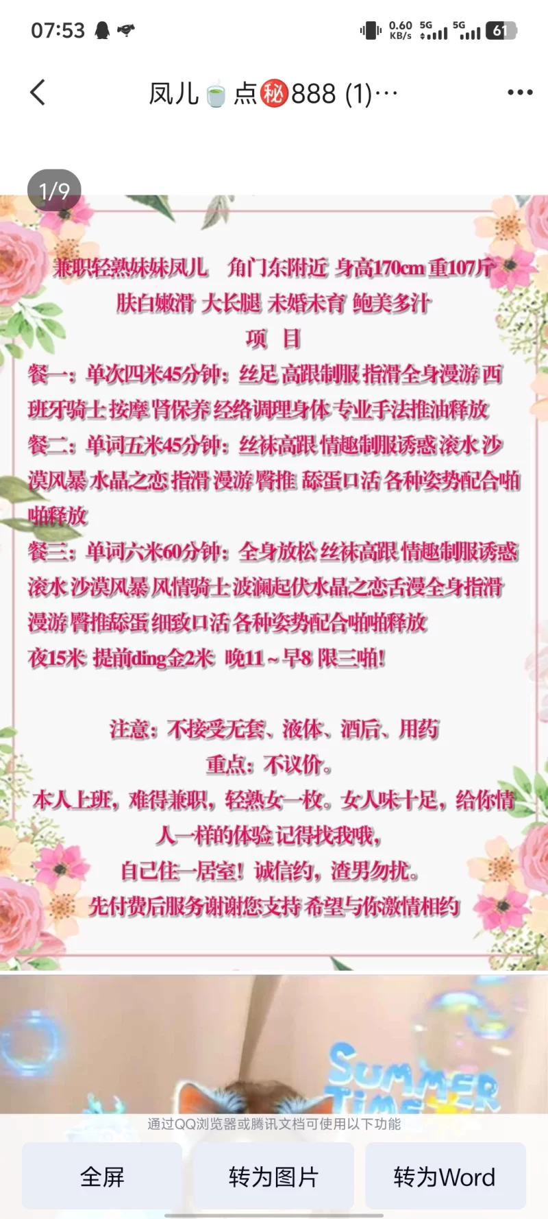 威客管理提示:要求付定金 保证金的,总之提前要钱的都是骗子 终于有时间来写写之前约过小雅的体验了,通过qq联系联系的她,约好时间去了她那,见面后看到本人,眼前一亮,刚好是我喜欢的类型,小雅是个可爱的女人,一头长发,微笑时特别迷人,一看就是特别的骚。说话声音很温柔,听的我痒痒的。我抱着她,她不拒绝,我趁机各种吃豆腐。小雅很听话,让我更加放肆了,小闹了一下,非常有感觉。我们一边调着情,一边进入状态。小雅还是非常奔放的,让我对她的身体有了初步的了解。该大的都大,皮肤也是特别的好。关键她还有风骚女人味,那就正式的搞起来,我们把衣服都脱了,脱光之后不用我说,小雅来陪浴,服务真的很耐心也很细致。全程都是她帮我洗,非常的舒服,态度一点都不敷衍,现在像她这么踏实服务的兼职还真的是不多了。洗了出来,小雅穿上了带来的开裆黑丝,那小黑森林若隐若现的让我热血了起来。我们缠绕在一起,在漫游的过程,几乎就是互舔,她亲我,我亲她,哪里敏感亲哪里,小雅身材相当的紧致,特别是大胸器,真的是招人爱,我把她的乳头又亲又吸了,小雅的呻吟声也浪了起来。一双大奶也被我搞的滚烫烫的。口活是无套的,做的可带劲了,小雅的小舌头上下齐扫荡,含住我的小弟弟,那叫一个爽快,一进一出,节奏太刺激了,我差点就要交待了。69式的时候,我也给她服务,小雅的表情很享受,我一般出来玩不太舔b,但小雅这b很嫩水汁清澈,让我忍不了。叫声越来越淫荡,我感觉快射了,便叫小雅给dd带上套套,小雅主动上位,咬着嘴唇用勾人的眼神看着我,奔放的甩着大奶干着我,我也没闲着,双手揉捏着她的大奶子,由于她下面比较紧,给我小dd造成的压力一次比一次大,我倒是乐在其中直接高潮,完事后,清理战场,小聊几句,小雅撒娇玩了下亲亲,恋恋不舍告别